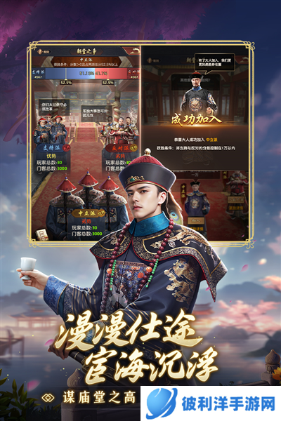 以古代官场题材策略经营手游,力求在视、听、玩全方位,把玩家从现实世界拉回古色古香的清廷世界,让您亲身感受一把韵味十足的古风生活,从九品芝麻官逐渐成为当朝一品大员,九品芝麻官也有出头之日!完善的官品晋升系统,让你体验封官进爵的快感,大权在握,无出其右,以官爷为视觉生动呈现,结识红颜、培养孩子、冷宫系统、家族联盟PK、培养门客、多人社交等精彩玩法,即使是国色天香的美人,失宠后也可以被打入冷宫,送到浣衣房。大人你是否会怜香惜玉?
