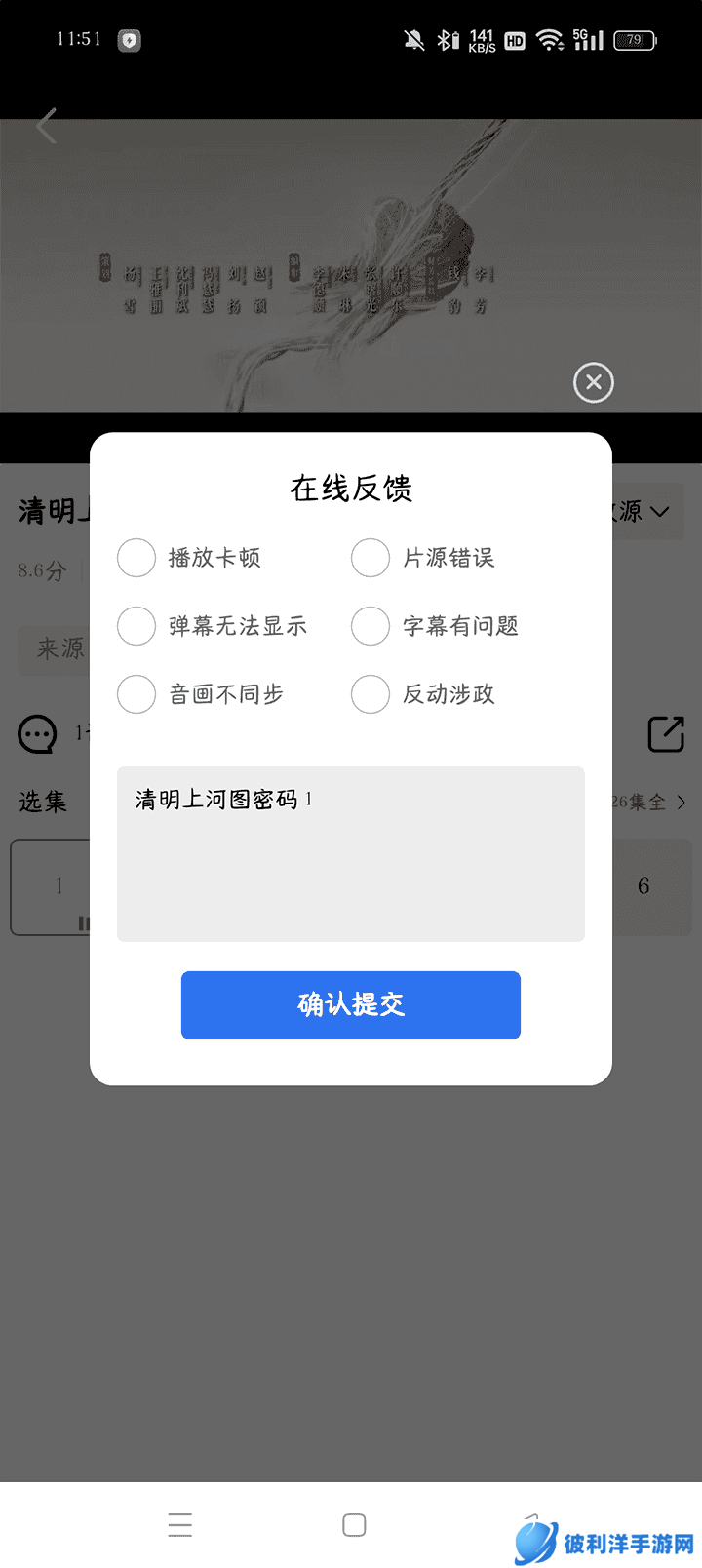 2、遇到播放卡顿、音画不同步等问题可以点击在线反馈