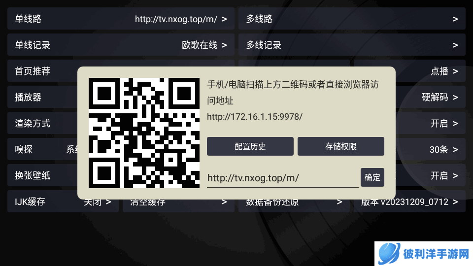 4、默认的地址会自动更新,速度很快,也可以手动切换地址,跟tvbox一样操作。