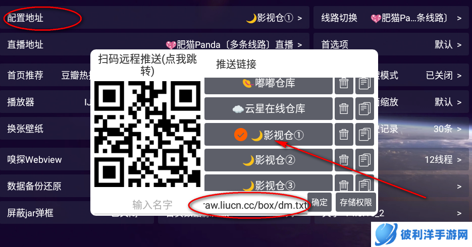 4、然后根据自己的需要来选择源,这里分享的是网上最全的一个接口地址,可自由选择任意线路。