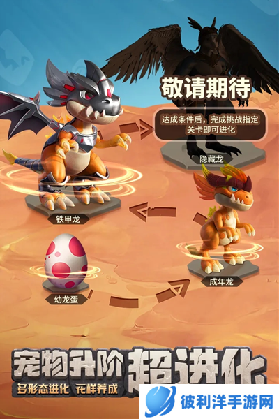 (2)进化:消耗宠物化石进化宠物,全面地提升宠物各种属性,进阶时需要消耗能量粉尘。宠物化石可在勇士之路、游猎收获、神秘(3)商店中获得:能量粉尘可在元素圣殿、神秘商店、宠物探索中获得。