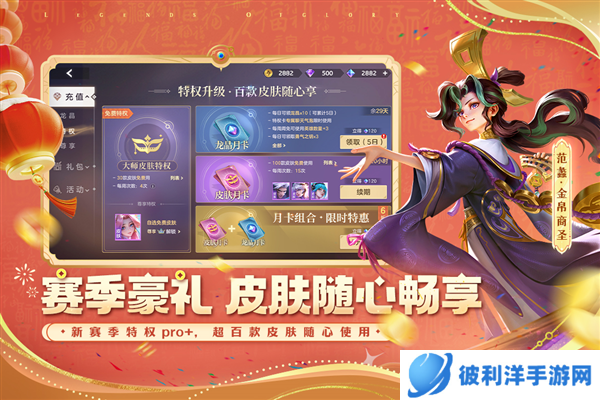 ③皮肤月卡界面重构,布局优化,新增皮肤特权,设置大师目标导向。