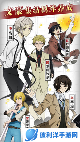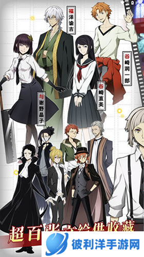 怀有文豪之名的游戏角色集结,无论是号称横滨F4的中岛敦、太宰治、芥川龙之介、中原中也,还是两大组织的头目福泽谕吉、森鸥外,还有泉镜花、江户川乱步、织田作之助、坂口安吾、费奥多尔等各种人气角色,你都有可能召集他们,成为队伍中的一员。
