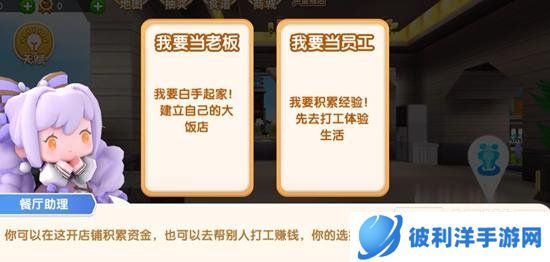 员工分为“跑堂”和“后厨”两种。跑堂负责接待顾客和服务,后厨则负责制作食物或饮品。员工可以通过完成任务获得工资和声望,提升自己的天赋点,从而解锁更多技能。