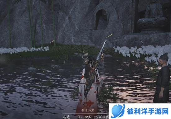 获取藏宝图线索一:在存放酒的货架上,找到使举味送出的藏宝图线索一。打开地图,根据指引来到标点位置,那里有一块河沟,旁边有个老翁在钓鱼.