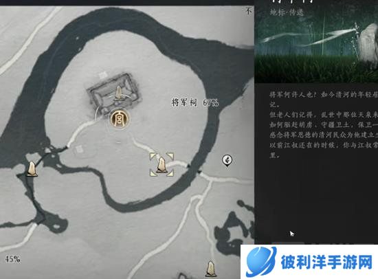 与村夫对话:在将军祠附近找到草地上的村夫,与其对话,然后查看藏宝图线索三。