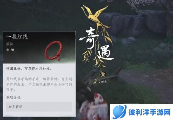 完成奇遇:阅读完“红线之信”后,奇遇“摇湖一梦”正式完成,你将获得一节“红线亲手边的手串”。