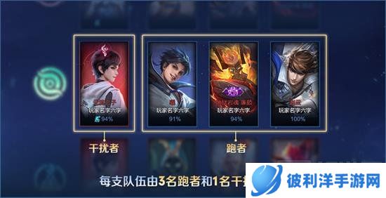 参与人数:共计12名玩家参与游戏,分为3队,每队由3名跑者和1名干扰者组成。