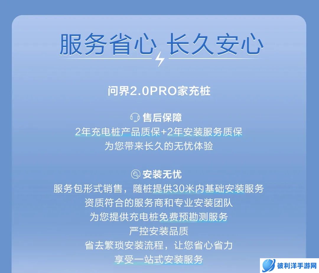 服务方面,问界 2.0 PRO 家充桩提供 2 年充电桩产品质保 + 2 年安装服务质保;随桩提供 30 米内基础安装服务,享受一站式安装服务。