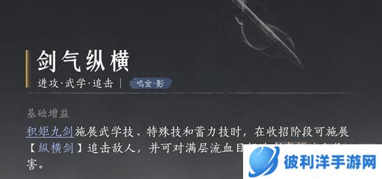 特点:剑气纵横提供强大的剑气攻击,易水歌和威猛歌增强连贯性和攻击力,燎原星火或极乐泣血为剑法带来不同的战斗效果。前者增加火焰伤害,后者在攻击时有几率触发特殊效果。