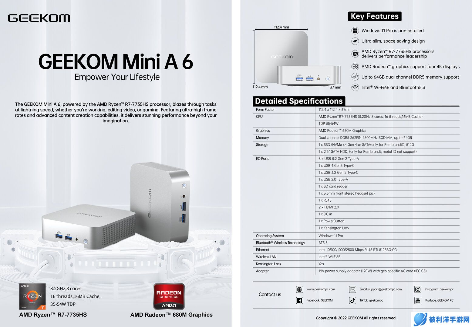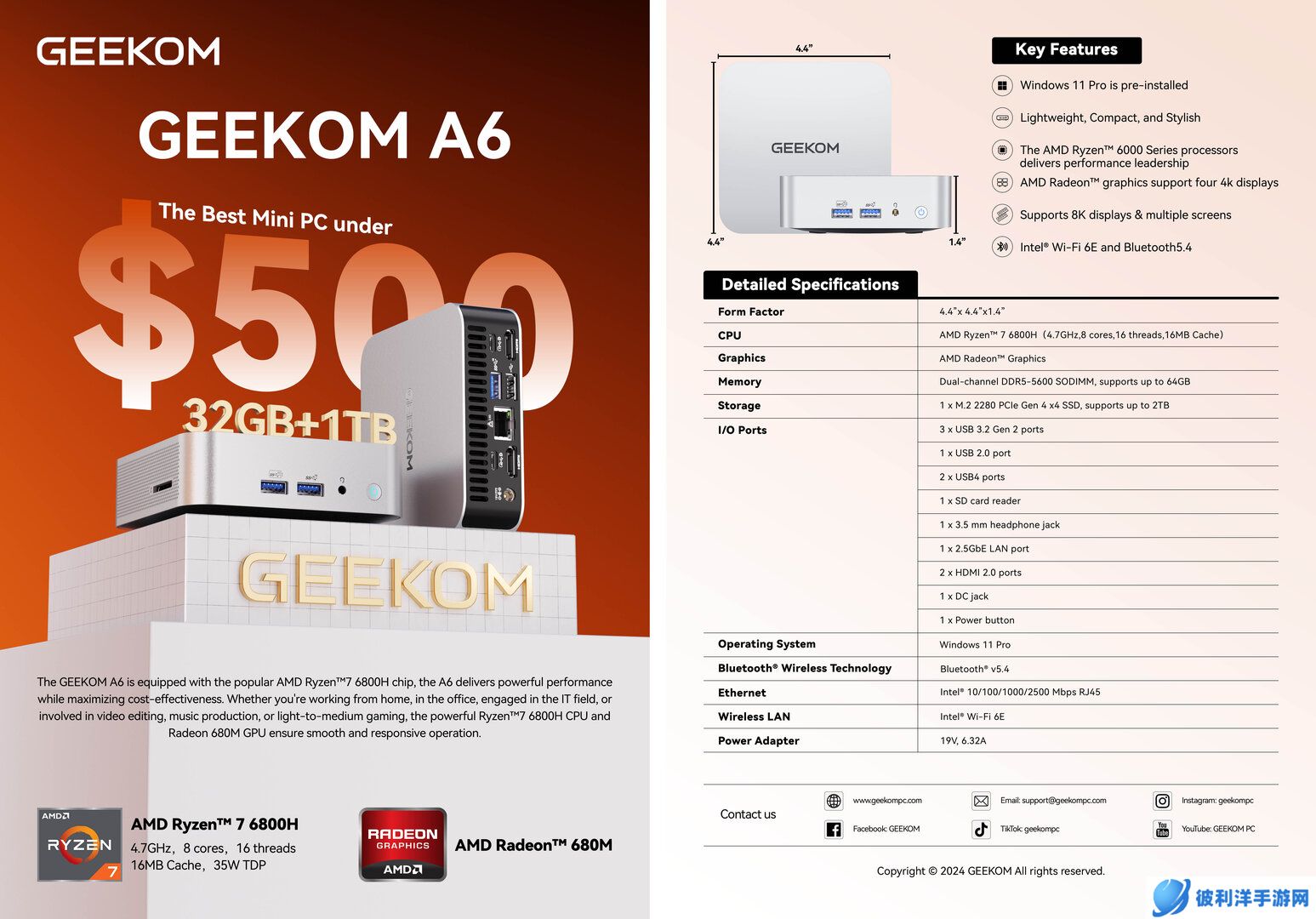 此外,该公司还推出了搭载 AMD 上上代芯片的积核A6迷你主机,这是一款定位在 500 美元(本站备注:当前约 3667 元人民币)以下级别的迷你主机,搭载AMD 锐龙 R7 7735HS 或R7 6800H,其他部分基本与上述型号相同,预计将于2025 年 1 月中旬在全球范围内上市。