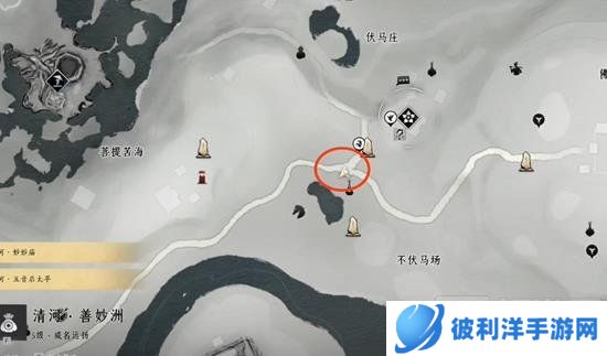 打开地图,传送到不伏马场左上角的三岔路口,具体位置如下图所示: