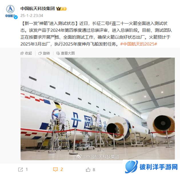 本站 1 月 2 日消息,中国航天科技集团刚刚宣布,长征二号 F 遥二十一火箭全面进入测试状态。这枚火箭预计于 2025 年 3 月出厂,执行 2025 年度神舟飞船发射任务。