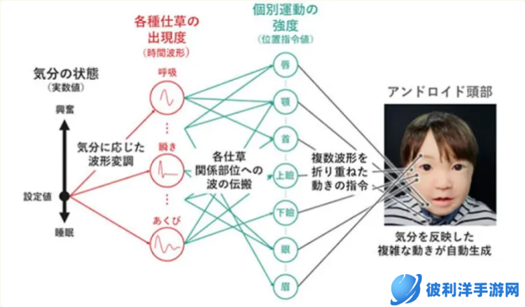 这种技术还可以根据机器人的内部状态调整个别波形,可以使机器人的内部条件变化即时反映为面部动作的变化。