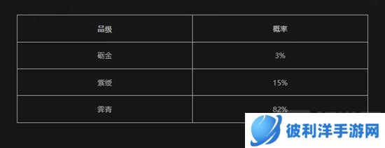 每个等级概略不同,遵从等级越高概率越低的套路,官方概率如下图: