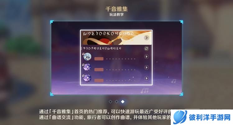 使用「千音雅集」,可以演奏提瓦特各地的音乐,以及与冒险中伙伴相关的歌曲。也可以对已有的乐曲曲谱进行编辑并发布,提供给其他玩家演奏。
