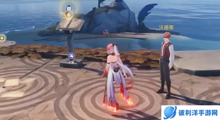 在这里找到一位名叫沃德蒂的NPC,和他进行对话。对话后来到旁边这个跟演讲台一样的装置这里,上面有一个金色的发光球,按一下交互键变成寂寞小姐,开始挑战。