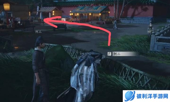 第二步:与何三对话并获取乔装线索