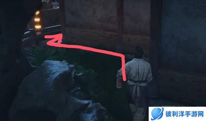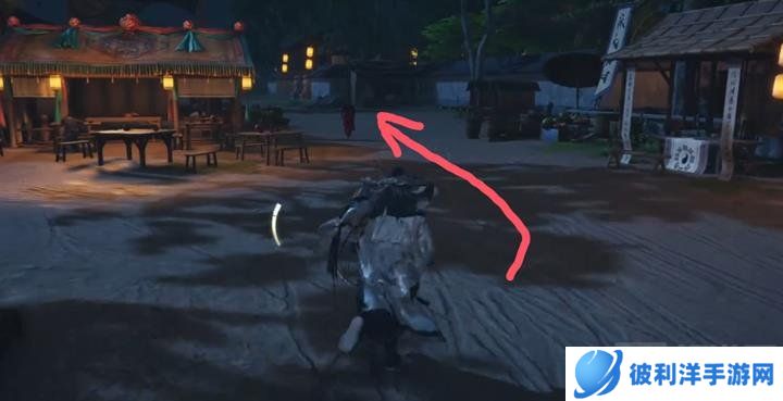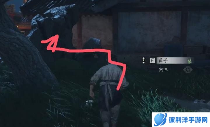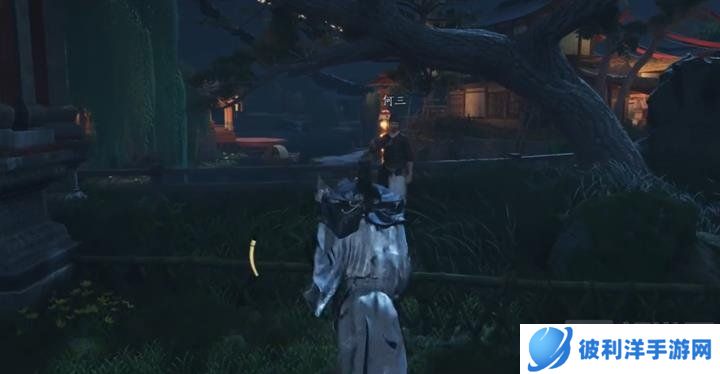 对话结束后,前往净尘身后的地点,找到另一个NPC何三进行对话。何三在下图所示这棵歪脖子树下面。