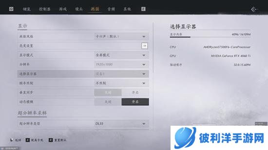 DLSS技术:DLSS(深度学习超级采样)是一种通过AI算法提升游戏画质和帧率的技术。玩家可以开启DLSS功能,它可以在保持高分辨率的同时,提高游戏的帧率,使画面更加清晰流畅,但需要设备支持DLSS技术.