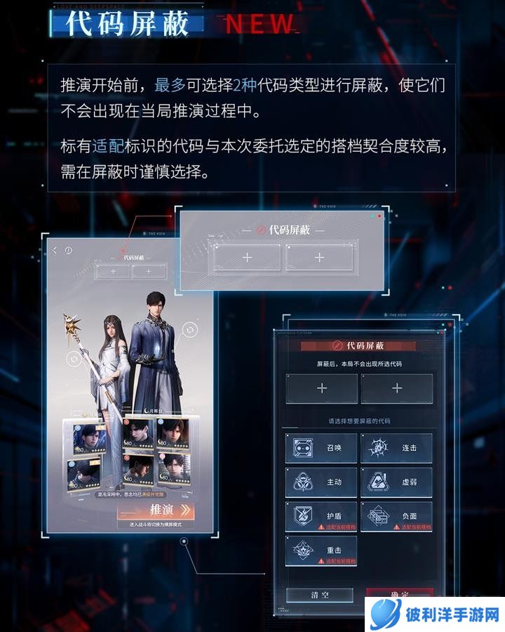 推演开始前,玩家最多可选择2种代码类型进行屏蔽,标有适配标识的代码与搭档契合度较高,建议优先选择。