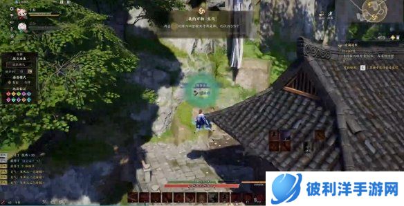 寻找挂在山壁上的招魂蟠。你需要飞到前方的建筑物上,在屋檐上仔细寻找,那里隐藏着一只灵体。这个步骤可能需要一些探索和观察,因为灵体可能不太显眼。
