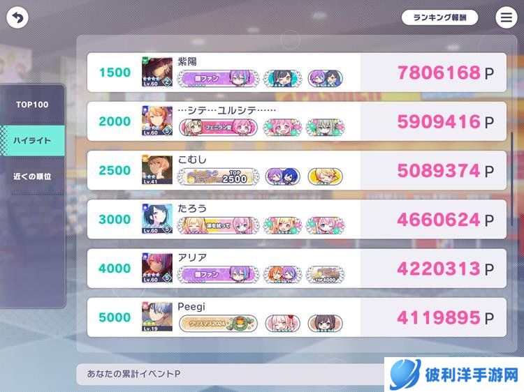 在打完歌曲之后,可以通过队伍的活动加成、队伍得分、消耗的倍率来计算出本次打歌可以获得多少活动点数。而一次活动内活动点数的累积,就决定了玩家的排名。