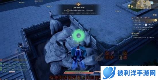 4、看到会喷水的神兽雕像,飞到头上去,找到灵体。