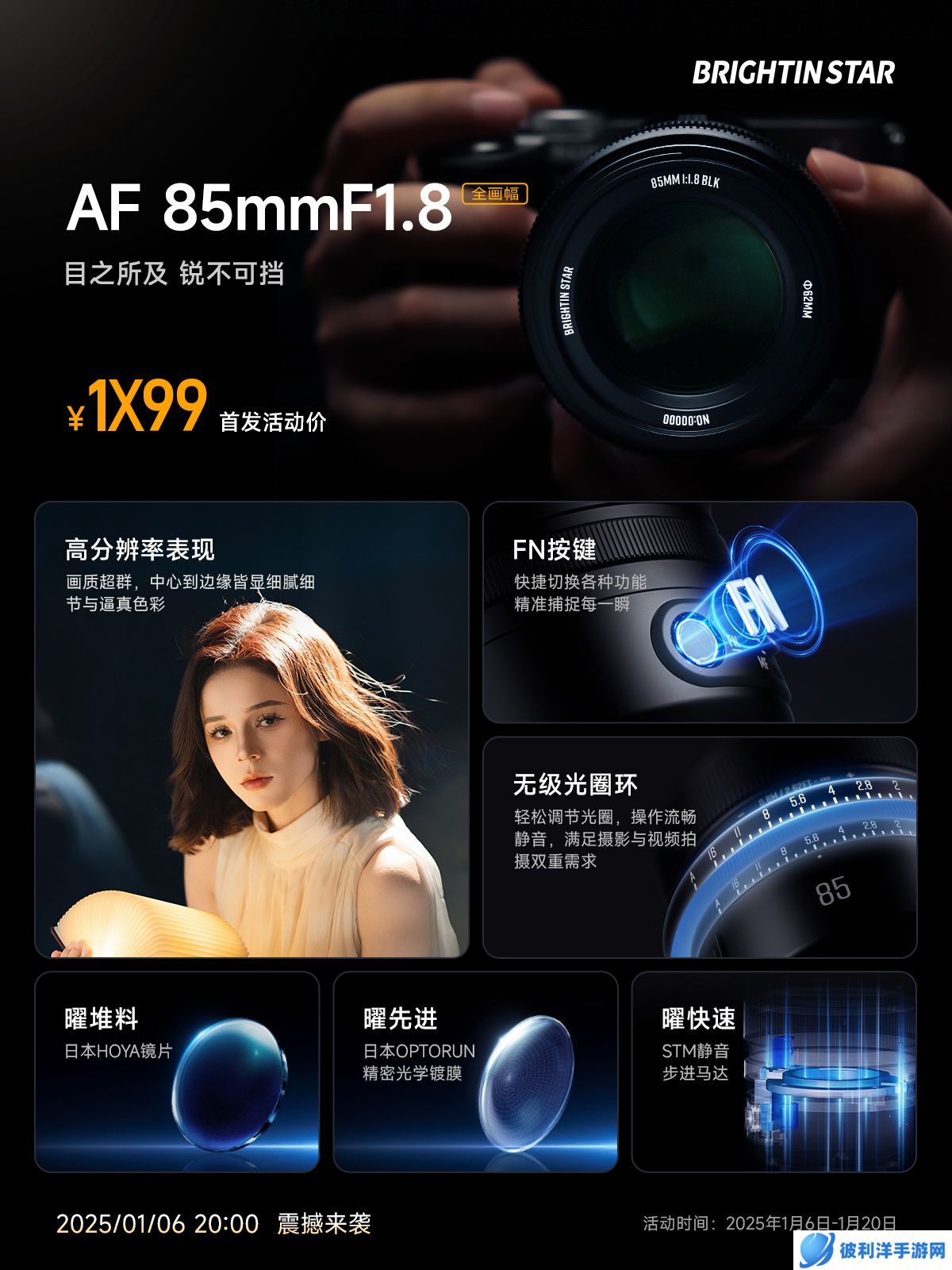 本站 1 月 4 日消息,星曜光学今日对即将发布的 AF85mm F1.8 全画幅自动镜头进行了预热,并公布了四位数售价中的三位数。