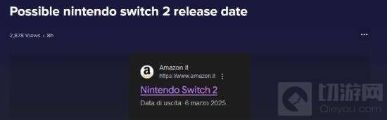 根据最新的消息,任天堂Switch 2的发售日期似乎有了新的线索。据Reddit论坛网友爆料,意大利亚马逊网站上一个搜索结果意外显示了任天堂Switch 2的发布日期为2025年3月6日,不过这一信息很快被亚马逊方面修复,相关页面已不再显示在搜索结果中。