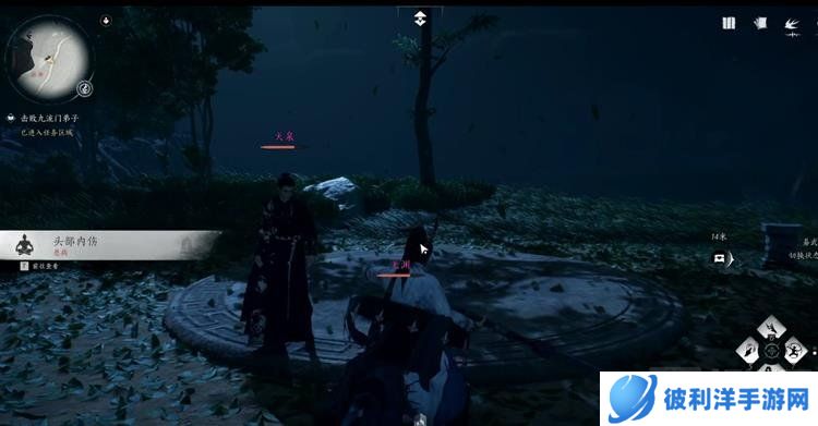 战斗并不算难,但要注意其中一人的招式会造成头部内伤,战斗结束后旁边的箱子可以打开,获得一个不义之财。