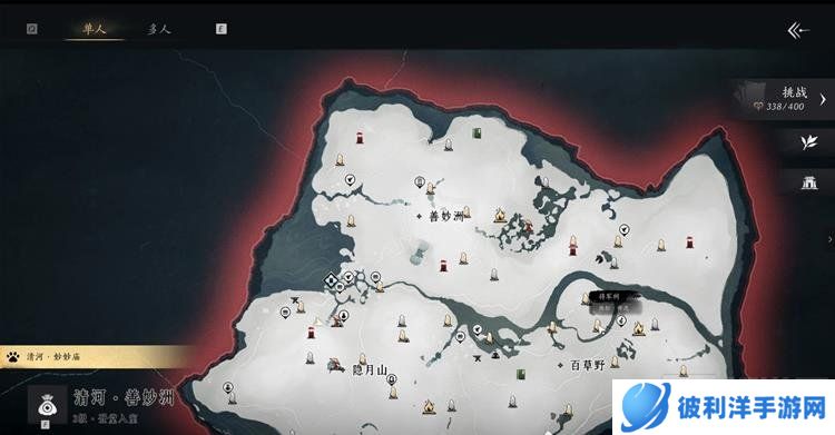 传送到百草野上方的将军祠,找到游商伏禄寿,按V进入听风辨位,发现他身上有不义之财,奇术暗取成功率为90%。
