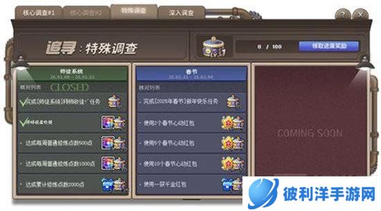 在特殊期间进行调查,会根据不同时间节点发布任务,需要尽快完成哦。