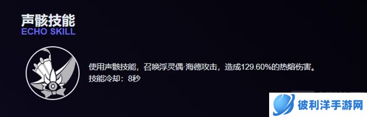 背景描述:浮灵偶·海德是一种神秘的声骸,以其独特的召唤攻击而闻名。它能够对敌人造成热熔伤害,是一种在战场上能够提供强大火力支援的存在。