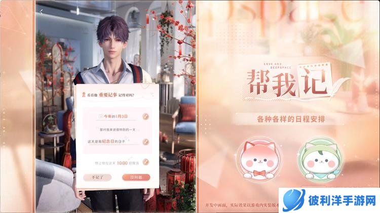 首先,【日常提醒】功能允许玩家设置需要提醒的事项以及希望收到提醒的时间点。你可以选择是否需要指定日期进行重复提醒,男主会将这些提醒记录在他的小本本上,并在游戏内外进行推送,确保你不会错过任何重要的事情。