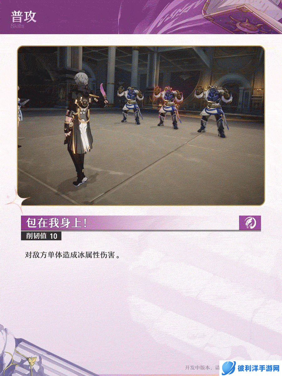 开拓者的普攻“包在我身上!”是一个单体攻击技能,可以对指定敌人造成少量冰属性伤害,并削减10点韧性。这个技能适合用于开场破防或配合其他技能打出连击效果。