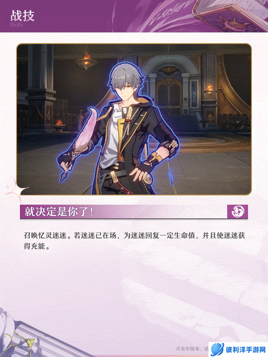 通过战技“就决定是你了”,你可以召唤忆灵迷迷到战场上。如果迷迷已经在场,则此技能会为迷迷回复生命值并提供充能。这是保持迷迷活跃于战场的重要手段,确保它能够持续发挥作用。