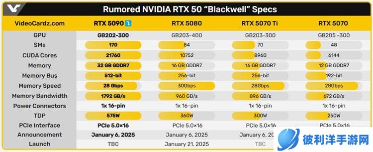 RTX 5090预计将使用GB202 GPU,并且将是RTX 50系列中唯一采用此处理器的型号。这款显卡预计会包含21,760个CUDA核心,热设计功耗(TDP)高达573W,相比前一代产品增加了125W。Nvidia预计将在拉斯维加斯举行的CES主题演讲中正式推出GeForce RTX 5090,时间定在北京时间周二(1月7日)凌晨。