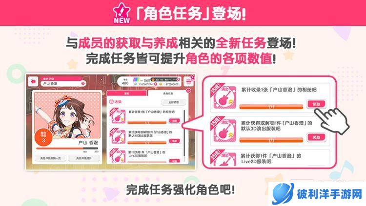 角色任务功能的实装也是本次更新的一大亮点。完成对应的任务可以提升成员的数值,帮助玩家更好地培养自己喜欢的角色。