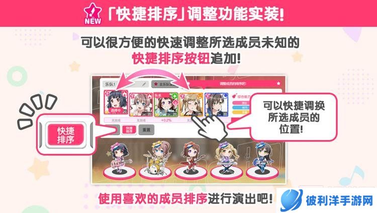 而且,乐队编成界面也实装了【快捷排序】功能,方便玩家快速调整成员顺序,提高游戏效率。