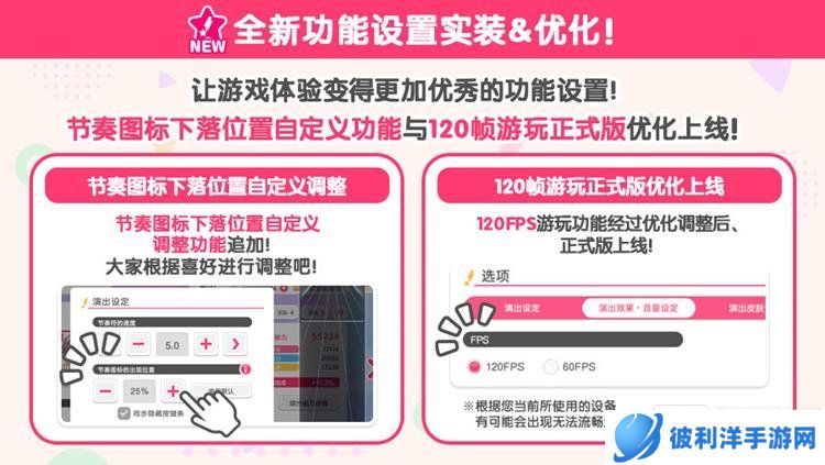 同时,120帧游玩功能的正式版也将优化上线。更新后,玩家可以在菜单中选择帧率,享受更流畅的游戏画面。不过,需要注意的是,MV演出模式和3D演出模式将固定为60FPS,而且根据设备的不同,可能会出现无法流畅运行的情况。