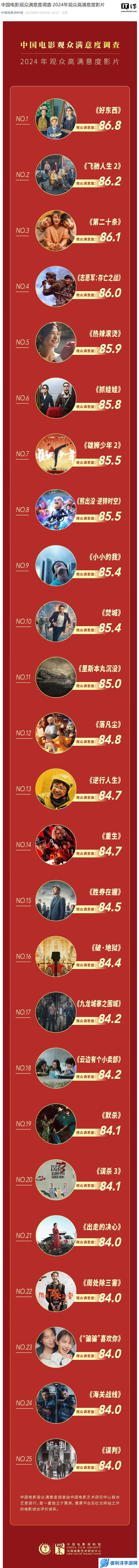 本站 1 月 4 日消息,据中国电影艺术研究中心,中国电影观众满意度调查结果出炉,共有 25 部影片进入2024 年观众高满意度影片榜单。