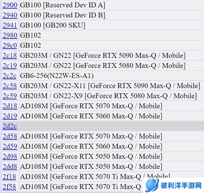 数据库信息显示,RTX 50 系列 Max-Q 版本 GPU 同时关联了 AD108M 和 GB206M 两种芯片。AD108M 芯片属于 Ada 架构,此前从未正式发布,定位低于 RTX 40 系列中的 AD107;而 GB206M 则属于 Blackwell 2.0 架构。这种双架构并存的现象引发了诸多疑问。