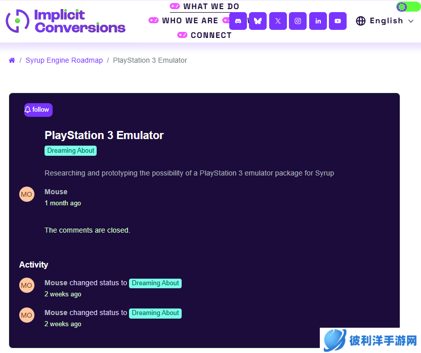 Reddit 网友还发现,该工作室一个月前刚更新了其 Syrup 引擎(移植过许多经典游戏)的路线图 —— 增加了一个包括“PlayStation 3 模拟器”的“梦想”部分,希望在接下来某个不确定的时间里能够尝试为 Syrup去制作 PS3 模拟器软件包并开发出相应的原型。