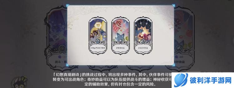 原神中,如何在幻想真境剧诗的卓越模式中巧妙地进行选牌呢?掌握选牌技巧是通关的关键之一。在游戏过程中,神秘收获环节会提供多种选择,其中“风险”主要体现在两个方面:一是给予增益但减少花的收入,二是获得角色但失去战斗后的选择机会。下面我们一起来看看如何在选牌时做出更明智的选择。