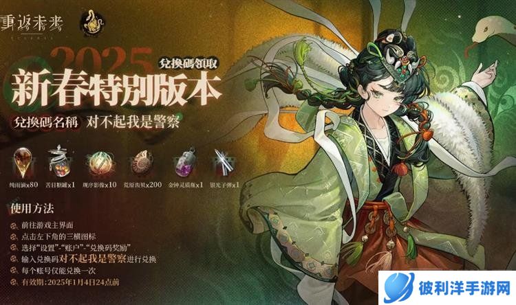 兑换码截止时间:三组兑换码均截止到2025年1月4日24点前!记得即使兑换哦!