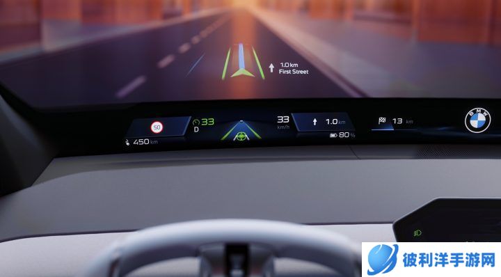 在宝马全景视觉(BMW Panoramic Vision)中,可以将信息投射至整个挡风玻璃宽度,带来更丰富的个性化内容显示。
