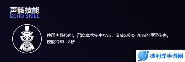 技能特点:使用声骸技能,召唤魔术先生攻击,造成3段43.20%的湮灭伤害。