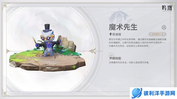 魔术先生的主要功能是通过其声骸技能对敌人造成湮灭伤害,这使得它成为适合各种玩家的攻击型声骸。由于其COST为1,玩家可以在队伍配置中轻松地纳入这个声骸,而不会对整体资源造成太大压力。在战斗中,合理利用魔术先生的技能可以显著提升团队的输出能力。